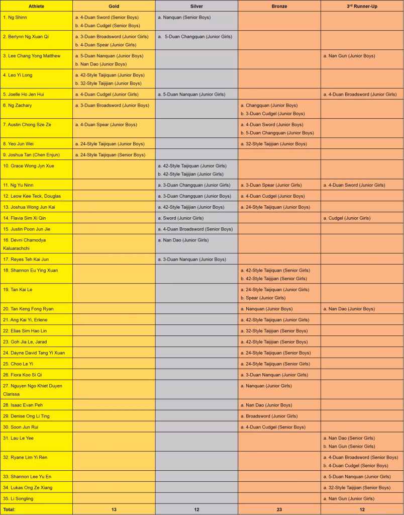 Read MoreIt was another day of intense competition at Chung Cheng High School (Main) with a total of 11 individual events. The athletes from Martial House have done well and attained a total of 5 Gold, 4 Silver and 3 3rd Runner-Up medals from today’s events! The medallists from today’s competition are: 42-Style Taiji Sword (1st … Read more